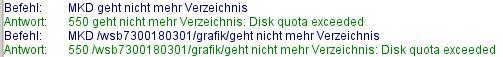 Auch ein Verzeichis war nicht mehr anzulegen: