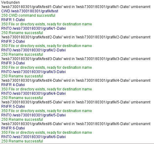 Das Ergebnis ist ein filetechnischer rename aller betroffenen Dateien. Die Pointer aller betroffenen Dateien zeigen jetzt auf die neue Position.