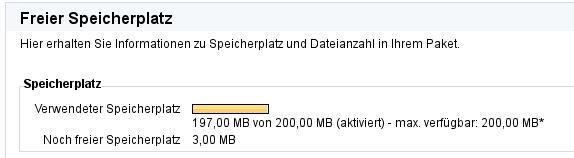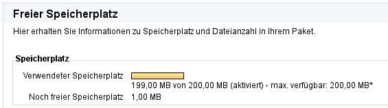 Dazu habe ich meinen freien Speicherplatz mit Daten aufgefüllt, bis nichts mehr ging: Zugänge --> Freier Speicherplatz