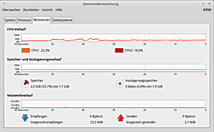 Die erste Aktion nach der Installierung des Systems dient der Anzeige der System-Angaben.