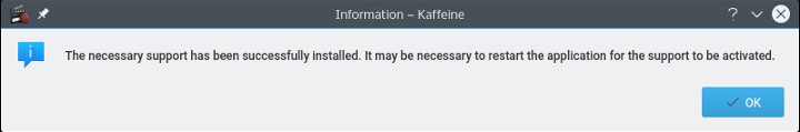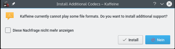 Mit der Installation dieser codecs habe ich Kaffeine die fehlende Video- und Audiowiedergabe vermittelt, bis auf die zusätzliche Support-Einbindung. Nach Aufruf von Kaffeine erscheint folgende