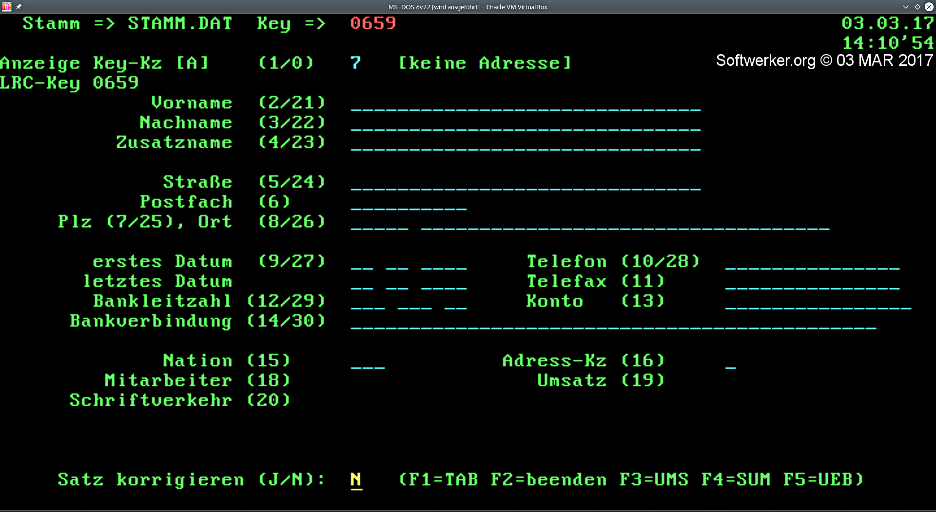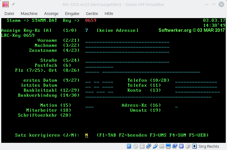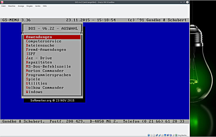DOS 6v22 als vollständiges System unter VM VirtualBox eingerichtet.