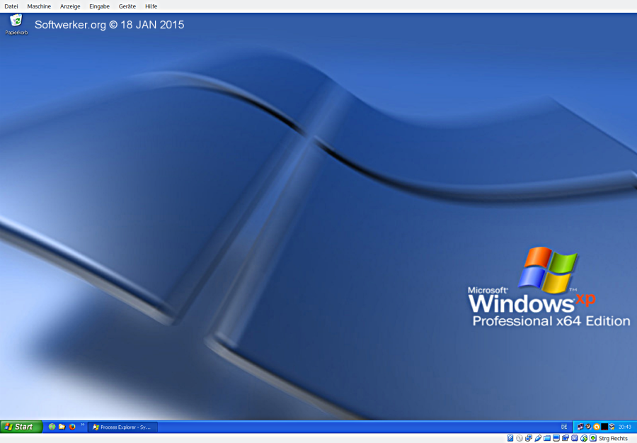 Windows XP Professional x64 Edition unter VM VirtualBox gestartet.
